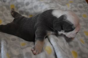 BREE FEMALE DOB: NOV 11, 2025 READY: JAN 6, 2026 COLOR: BLUE TRI INCLUDED IN PRICE: MICRO CHIPPED AKC PUPY PROTECTION PACK AKC REGISTRATION ALL SHOTS & WORMINGS WILL BE CURRENT VET CHECKED PRIOR TO DELIVERY 1 YEAR HEALTH GUARANTEE
